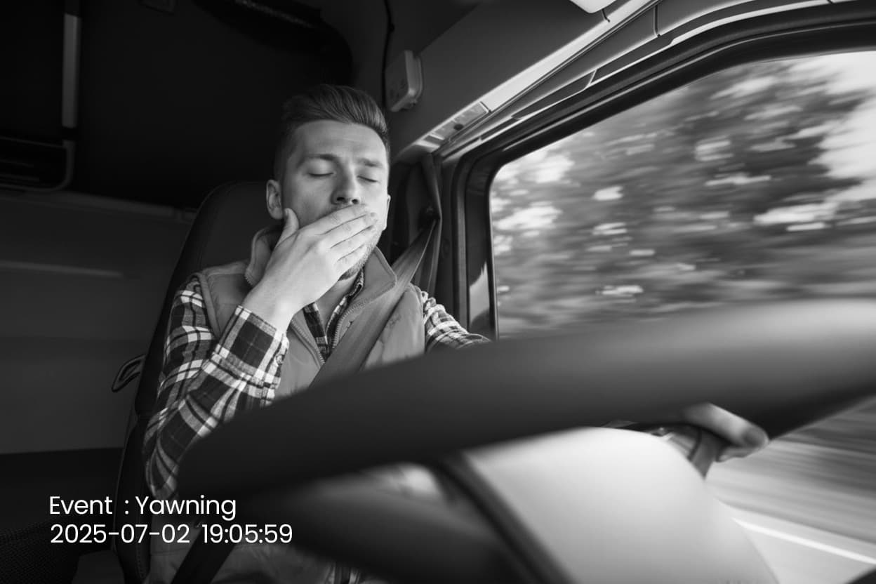 Identifies signs of drowsiness, such as yawning or eye closure, and immediately notifies dispatchers to take corrective action.