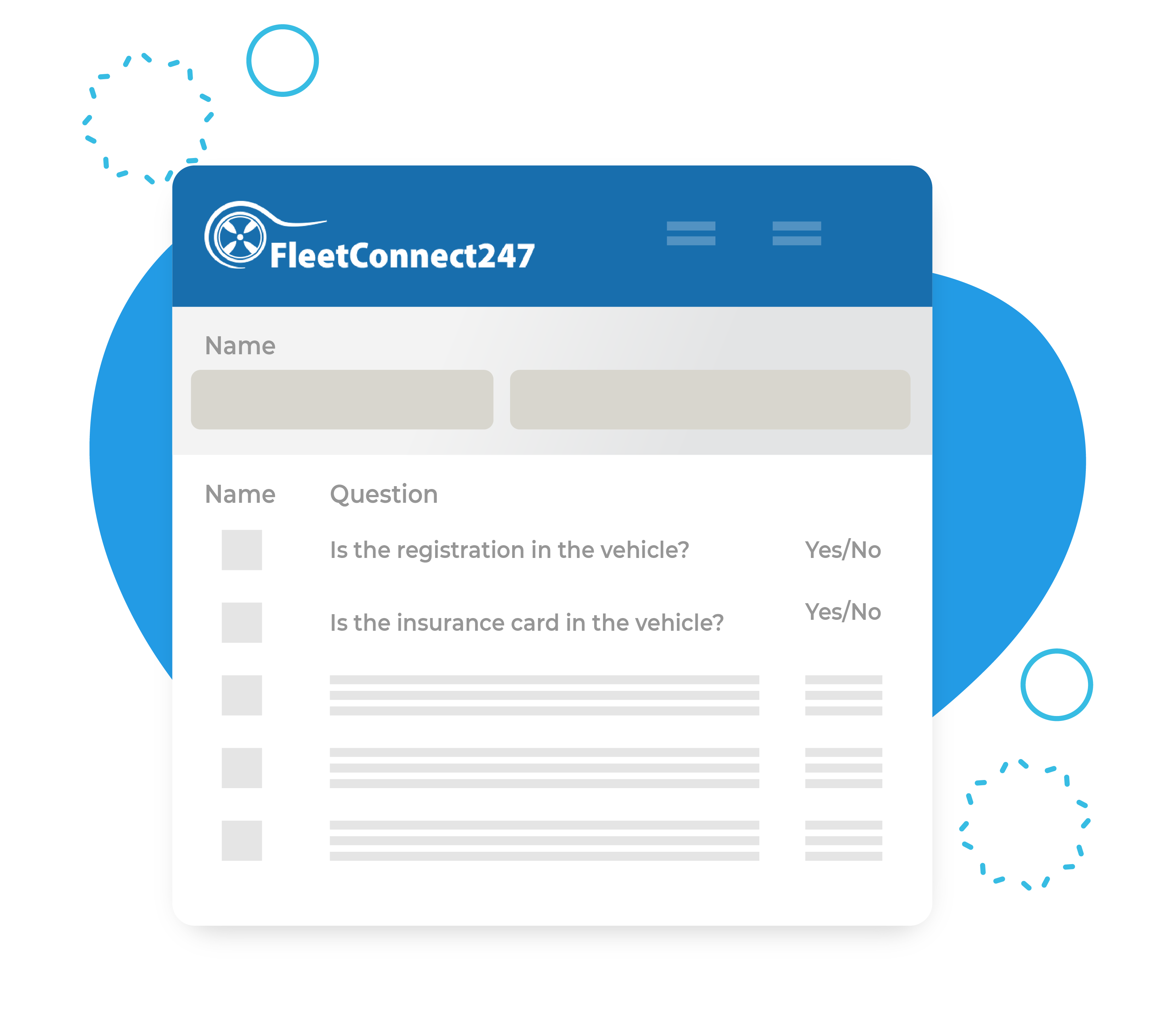 FleetConnect247 allows you to create electronic vehicle inspection forms replacing your paper forms. You can choose from pre-defined forms or create your own, with task types yes/no, open ended, etc questions can be mandatory or optional.